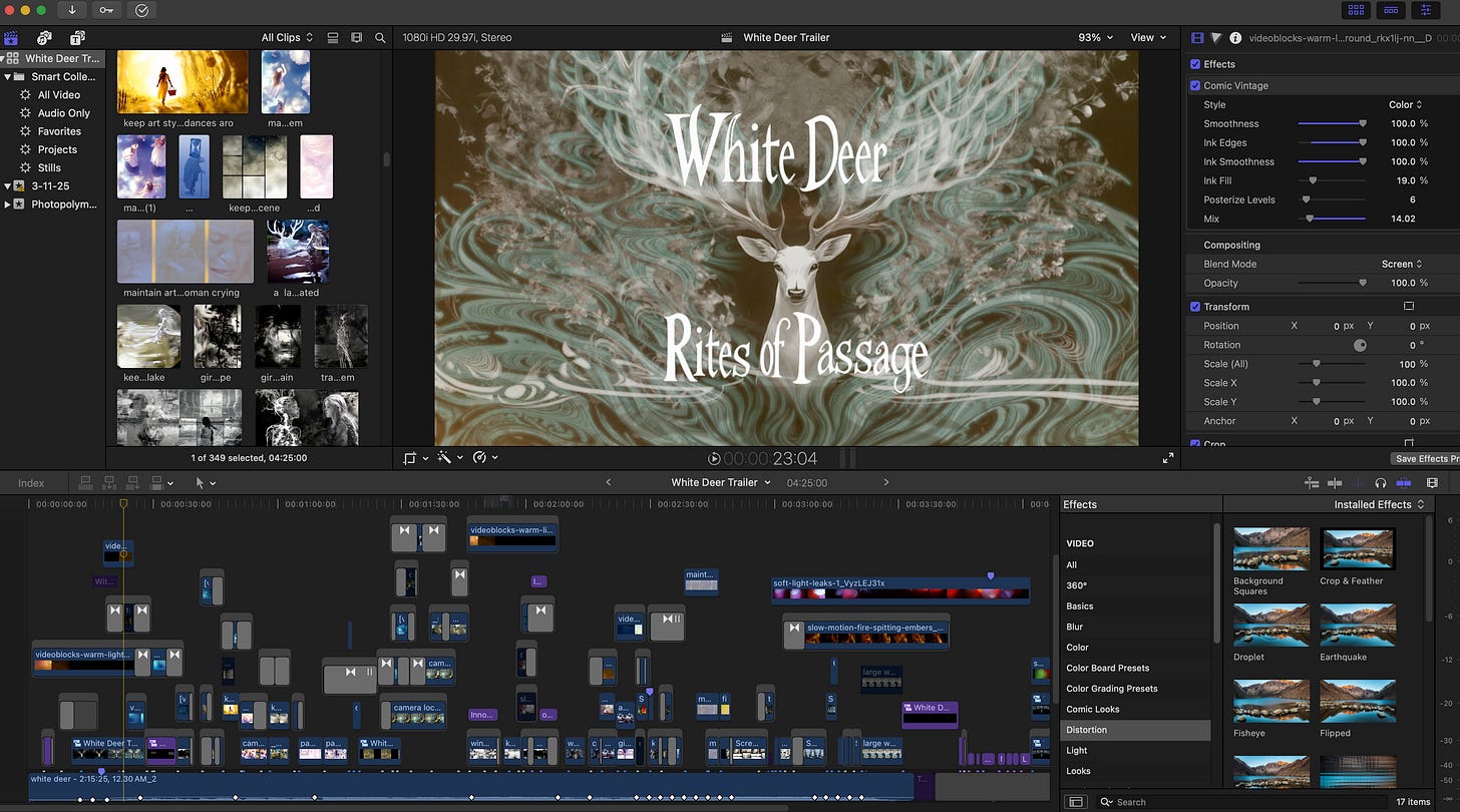 I also began introducing musical elements from my early score, testing how sound and image interacted. (James Raymond will be producing the final musical score with me. More on this later.) Even in the stripped-down, experimental trailer, it was clear that something magical was emerging. The work revealed its potential, reflecting the same transformative process that had guided the project from poem to graphic novel to animated film. Just like alchemy, just like me.